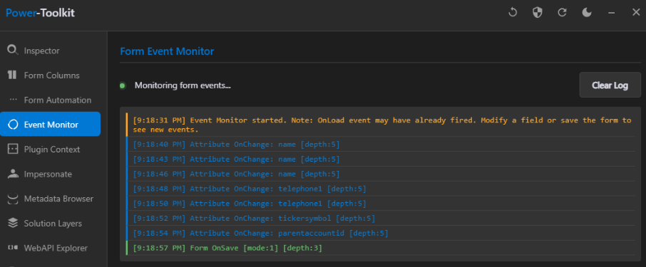 Example of Form Event Monitor