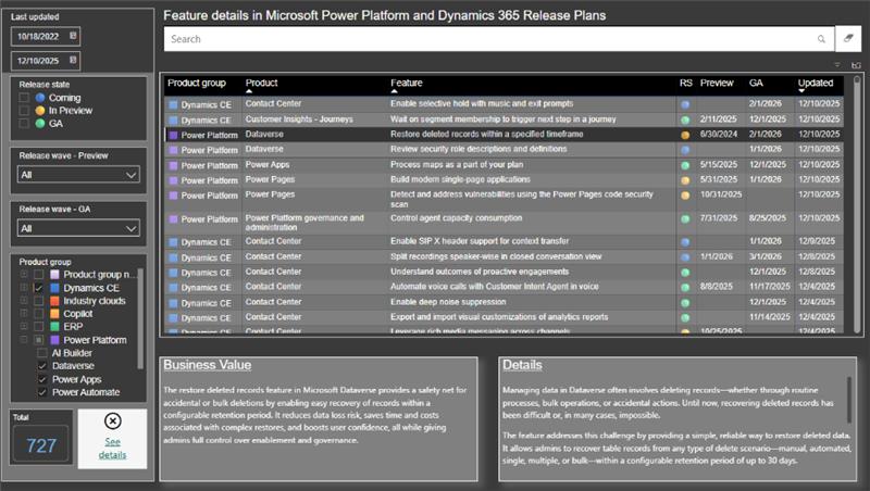 Anyone who has tried using Microsoft’s official Release Planner knows it can sometimes feel slow and difficult to search. Important updates are split across categories, making it hard to see what has changed recently. Release Plans Visualized, created by Jukka Niiranen, solves this by taking the official release plan data feed and presenting it in a clear, Power BI-based view. You can quickly filter by product, feature status, date, preview vs GA, and immediately see what has been updated most recently. The site is refreshed daily and can be bookmarked for easy access. If you prefer, you can also download the report from GitHub and use it locally. It’s not an alternative source of information – it uses the same Microsoft data, just presented in a way that makes sense, without digging through multiple pages.Example of changes in Visualized Release Plan