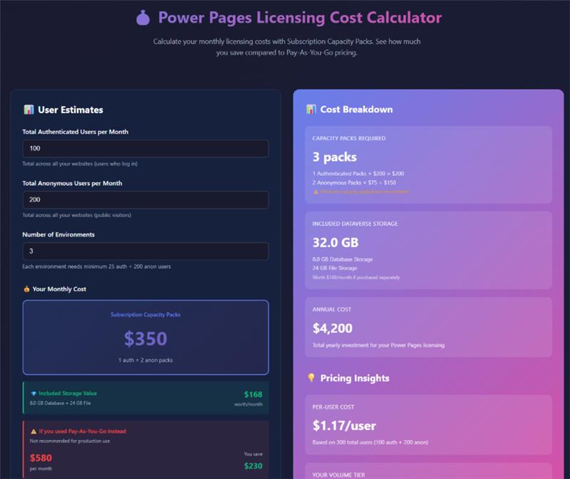Power Pages Licensing Cost Calculator