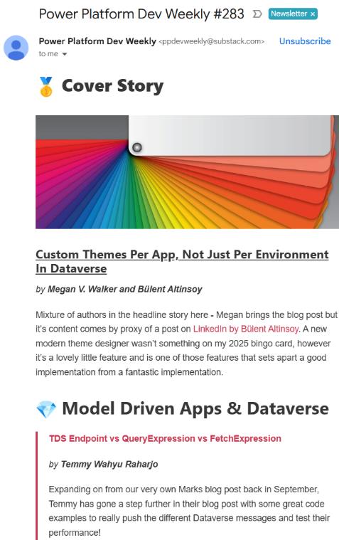 Both community solutions in the Power Platform ecosystem and official Microsoft features evolve at a rapid pace. New tools, improvements, breaking changes, and documentation updates appear constantly. Trying to keep up by manually checking blogs and documentation pages quickly becomes unrealistic – which is why notifications and summaries are so valuable. Below are tools that help you stay up to date without feeling overwhelmed.