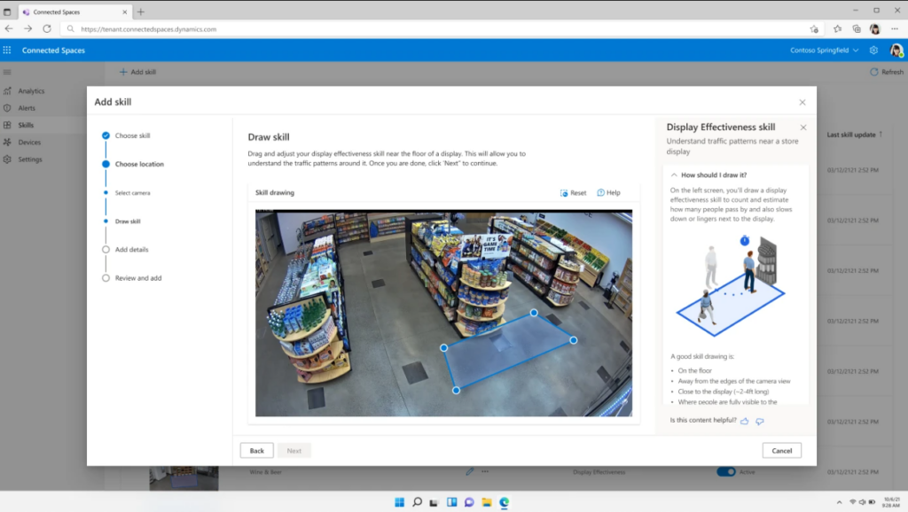 To niezwykle istotne rozwiązanie dla branży Retail, które pozwala na wykorzystanie zainstalowanych kamer do generowania danych o zachowaniu i preferencjach Klientów. Co ważnie, nie ma konieczności wymiany sprzętu, a wystarczy jedynie skonfigurowanie go za pomocą aplikacji typu SaaS (Software as a Service). Dynamics 365 Connected Store daje zupełnie nowe spojrzenie zarówno na Klientów obecnych w sklepie, ale również na asortyment i jego umiejscowienie. Sztuczna inteligencja dostarcza, w oparciu o analizowany obraz, informacji o zachowaniach Klientów, przebytych ścieżkach, hot spotach i omijanych strefach. Kamery skierowane na drzwi policzą odwiedzających z uwzględnieniem daty i godziny, a te umiejscowione przy artykułach promocyjnych i banerach reklamowych, określą faktyczną skuteczność przekazu.