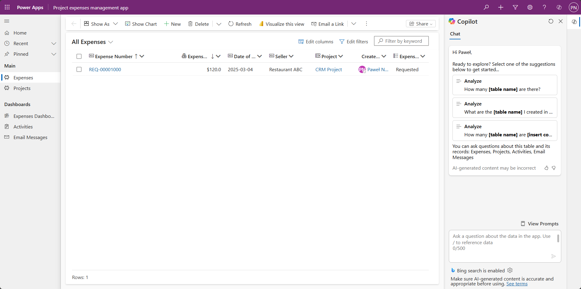 - Power Apps Copilot – budowanie aplikacji za pomocą języka naturalnego.