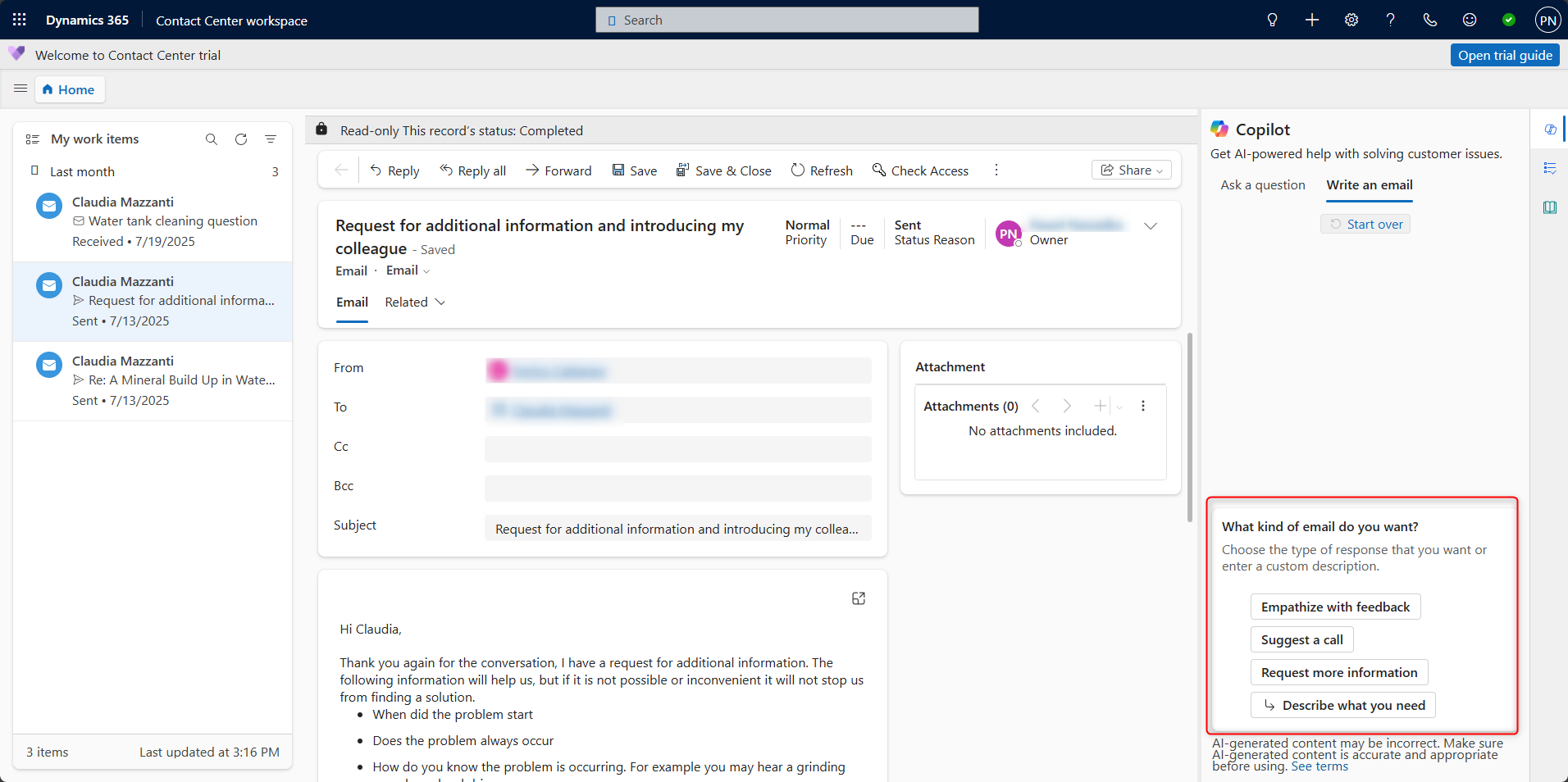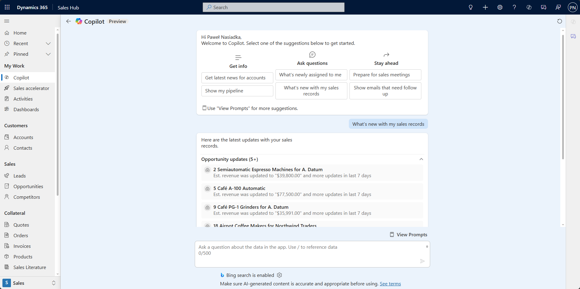 - Copilot for Sales / w Dynamics 365 Sales – wnioski z CRM, pisanie maili, podsumowania klientów.